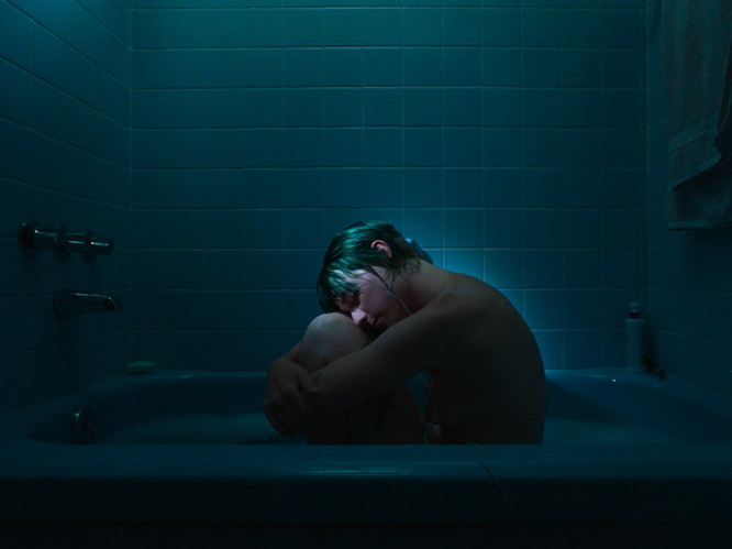 AH : Ça, c’est une idée qui vient d’elle. Je lui demandais comment elle décrirait sa situation à quelqu’un qui n’a jamais vécu un sentiment profond de n’être pas bien dans son identité, dans son corps, de m’expliquer le sentiment de cassure qu’elle a vécu à l’adolescence. Puis elle me disait simplement : « Imagine que chaque matin tu te lèves et que tu es une espèce de monstre gluant, mais que personne ne le voit. Tu vas jouer avec tes amis, tu es dans la cour d’école, tout le monde pense que c’est normal, mais toi, tu as l’impression d’être gluant, d’être tout le temps sale, de ne pas être toi-même finalement. » Je me suis dit que ça ferait une super image. Donc, l’idée de base vient d’elle. Mais après, la façon d’en faire du cinéma, ça vient de moi.