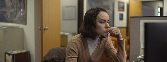 C’est bizarre et rafraîchissant de voir Daisy Ridley (la vedette des nouveaux Star Wars) dans un drame sentimental aussi prosaïque, et de constater comment son flegme se transforme naturellement en symbole d’aliénation, sans la propension naturelle aux exploits surhumains de son personnage de Rey. Sa relative atonie sert en effet parfaitement la caractérisation de son nouvel alter ego, Fran, une employée de bureau solitaire et réprimée dans une petite ville de l’Oregon, encline à des rêveries morbides qui rappellent une sorte de Walter Mitty dépressif. On aimerait ajouter qu’il est agréable de la voir atterrir ici dans le vrai monde, mais ce serait sans compter sur la nature subtilement parodique de ce « vrai monde », minutieusement conçu par Rachel Lambert comme une sorte de champ de bataille allégorique entre la puissance abrasive du quotidien et la potentiel salutaire de l’ouverture à autrui et de l’affirmation de soi.