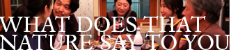L'émotion en question, c'est bien entendu cette mélancolie existentielle que l'ivresse attise. On boit toujours autant, chez Hong Sang-soo. On boit au point de perdre le contrôle de soi, de révéler sa vraie nature et d'exposer maladroitement ses angoisses les plus intimes à sa belle-famille que l'on rencontre pour la première fois. On perd la face. On titube sous l'influence du makgeolli. Mais, de façon de plus en plus franche, ce malaise provoque aussi le rire. What Does That Nature Say to You est donc à ranger du côté des Hong Sang-soo « comiques », avec ses remarques récurrentes sur la moustache de Ha Seong-guk et ses conversations inopinées sur la Kia Pride 1996 qu'il conduit. L'humour y est spontané, comme d'ailleurs tout le reste. Rien n'est jamais forcé. Cultivant l'insouciance et la légèreté, le cinéaste trouve ainsi dans cette mise en scène leste et décomplexée une partie de la solution aux questionnements esthétiques soulevés par ses personnages de poètes et d'artistes : quelle est la meilleure façon de faire ressentir à l'autre ce que l'on a soi-même ressenti ? Sans ambages, sans artifices. Avec la plus grande sincérité possible, quitte à ce que la finition soit un peu rugueuse, inégale. Sans être ni une comédie, ni un drame. Car la vie n'a que faire de telles catégories, et Hong Sang-soo non plus. (Alexandre Fontaine Rousseau)