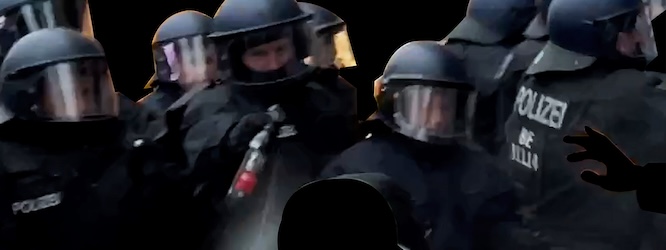 Un autre film à Rotterdam qui ne se contente pas de son sujet. Ici Mahshid Mahboubifar présente des images des manifestations berlinoises de 2024 contre le génocide palestinien. À l’écran, des citations de Frantz Fanon et de Judith Butler annoncent à la fois un documentaire sur la répression policière particulièrement violente en Allemagne et un traité d’occupation du territoire. En découpant les images et en en isolant des éléments distincts, la mise en scène souligne les visages, les armes, les caméras, au gré d’un texte de Fanon qui, en voix off, félicite son interlocuteur d’utiliser son corps pour occuper ce que l’État cherche à tout prix à contrôler. Le détour par l’histoire de la police rappelle son rôle dans l’expansion des colonies au 19e siècle, sa domination de l’espace public en tenant hors de vue les vies et les expressions minoritaires, tout ce qui semblait étranger à la prospérité économique et hégémonique de la métropole.