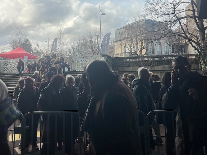 Je croyais avoir compris le « sens » de la file, jusqu’à une petite scène, typiquement française, voire clermontoise. Une dame d’un certain âge, nerveuse et visiblement impatiente à l’idée d’entrer dans la salle Agnès-Varda, dépasse tout le monde, en s’installant à côté de moi dans la file. Sur le coup, un sentiment de frustration, je lui montre en silence, d’un simple geste, que la file commence beaucoup plus loin, mais avec la gêne de déplacer une dame plutôt âgée. Elle acquiesce, gentille, confuse. Quelques minutes plus tard, je la retrouve devant moi, tout sourire.