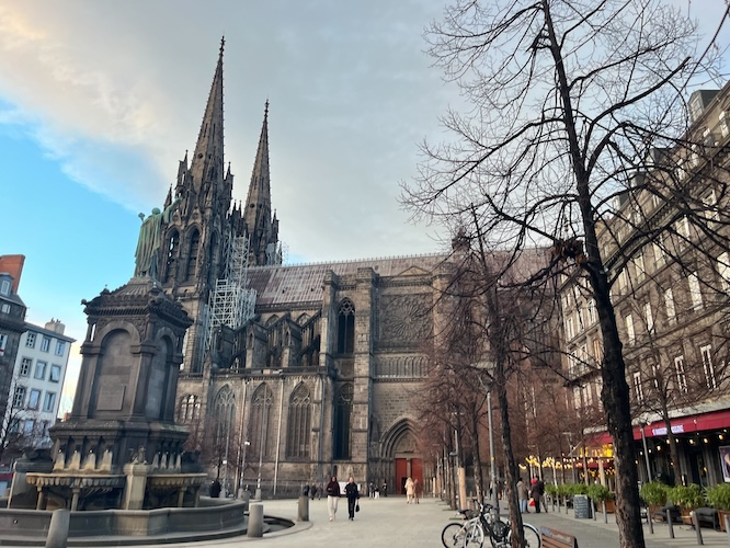 Dans le centre, autour de la place de Jaude, Clermont est prise d’assaut par les festivalier·ère·s. On reconnaît les badges, les petits sacs, les programmes cornés, la démarche pressée de ceux et celles qui font une diagonale entre deux séances. La ville, située au cœur de l’Auvergne, dans le Puy-de-Dôme, porte aussi une géographie très particulière : la présence volcanique n’est jamais loin. Et au milieu de ce paysage, la cathédrale de Clermont, sombre, massive, faite de pierre de Volvic, trône au cœur de la ville et finit par habiter le festival lui-même. Après une visite, on repense aux vitraux (qui ont cette particularité d’être dans une mandorle de fer, à la manière de Sainte-Chapelle), on pense également à ce vert et même au rose des vitraux modernes qui sont pénétrés de lumière. On repense aussi au son de l’orgue, à cette vibration qui s’installe dans l’oreille. En salle, cette cathédrale nous poursuit, contamine l’écoute. La ville, certes, modifie la façon dont on reçoit les films.