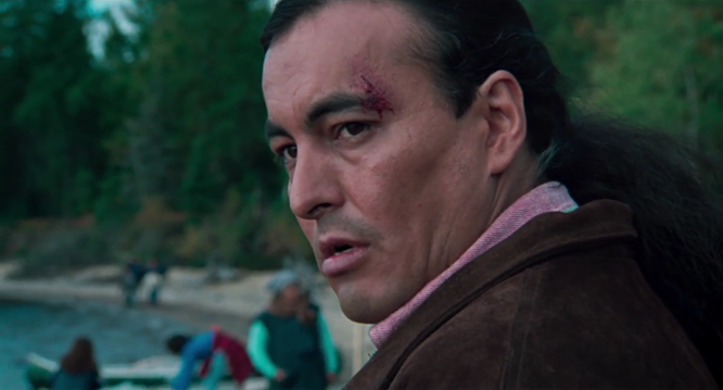 Encore une fois, on retrouve ici chez Laroche un personnage qui reste fidèle à lui-même au fil du récit, un homme charismatique, imperturbable et fonceur, dont la posture réelle est avant tout imputable à la perspective d’autrui. Contrairement au film précédent, on finit éventuellement par rencontrer l’homme en personne, mais en ayant préalablement été entretenu de différents épisodes de sa vie narrés par quatre des membres de l’équipage (dont chaque témoignage ouvre sur une séquence imbriquée, raccordée sur le mouvement), de sorte que sa légende précède son essence. Décrit alternativement comme un manipulateur (par le fonctionnaire des affaires autochtones, qui se remémore une intervention contrariante lors d’un conseil de bande), comme un extrémiste (par le chef Volant, qui narre un souvenir de l’époque des barrages autoroutiers) et comme un dangereux contrebandier (par le représentant du cabinet du premier ministre, qui raconte une rencontre humiliante dans la forêt), Laroche se révèle à nous comme une sorte d’archétype. « Un manipulateur, un extrémiste, puis là un pusher de cigarettes, tous les clichés qu’on peut avoir sur les Indiens rassemblés dans le même gars », notera Fontaine, qui voit dans ces étiquettes autant de manœuvres politiques. « Faire passer son adversaire pour un extrémiste, la passe classique de tous les politiciens », dira-t-il à propos du témoignage de Volant. Or, lorsque l’on rencontre Laroche à la fin, quand on lève le voile (de plastique) sur son existence réelle, il cesse dès lors d’être un symbole pour redevenir un humain, en proie à la maladie et à l’amertume de la défaite.