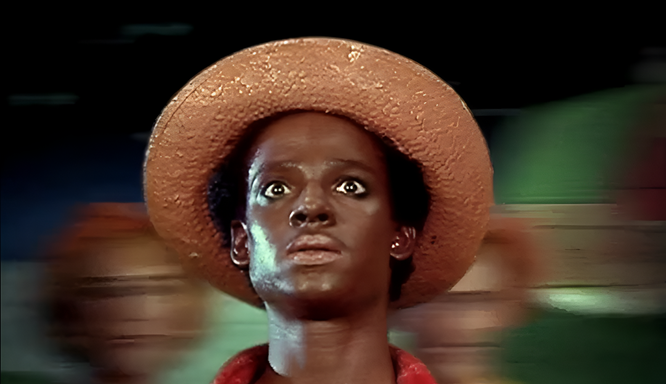 Le jeune Noir, lui, contrairement à Régis Savoie ou Eddy Laroche, n’aura aucune chance de s’exprimer, aucune chance d’aspirer à l’autodétermination puisqu’il meurt avant même l’arrivée des enquêteurs et que nul témoin ne lui prête une parole. Son identité est donc entièrement tributaire du regard des autres ; c’est une création fantasmatique, un « nègre » stéréotypique dont l’existence comme tel (comme un individu de facto méprisable, du moins digne des quolibets dont on l’affuble) est le produit d’une bande de péquenots blancs frustrés, jaloux de sa jeunesse, de sa beauté et de sa puissance sexuelle hypothétique. Ce n’est pas un individu réel dans l’économie déshumanisante du film, c’est un être sans nom, une construction populaire tressée de surnoms moqueurs (Ben Johnson, la gazelle, Bruny Surin, Zimbabwe, King Kong, Kunta Kinte). D’où le titre controversé du film, qui renvoie un miroir déformant aux figures de Savoie et de Laroche, dont le processus de mythification se transforme ici en processus infamant, rien que pour quelques pigments de trop…