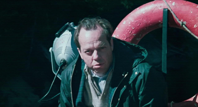 L’introduction du récit se fait par le truchement d’un journal télévisé, où le présentateur annonce la déclaration d’indépendance de la nation d’Aki, fondée par Laroche et ses compatriotes sur un territoire de 30 000 km2 situé entre l’Abitibi et le Nouveau-Québec. S’ensuit un topo qui nous offre un survol succinct et prédigéré des événements qui ont mené à cette déclaration d’indépendance, permettant d’introduire le spectateur aux enjeux de l’œuvre, mais sans jamais pénétrer en profondeur, particulièrement en ce qui a trait à Laroche. « De lui, on ne sait rien, il ne nous reste que cette image », dit la journaliste alors que la caméra effectue un zoom étrange, symbolique d’une percée introspective, sur un personnage masqué qui rappelle le célèbre Lasagne de la Crise d’Oka. L’image proprette et superficielle du discours médiatique s’évapore dès le moment où l’on pénètre dans la subjectivité de Fontaine, dont le cynisme corrode la langue de bois de ses pair·e·s. Qualifiant le navire de « bateau-théâtre » où les « personnages » effectuent leur « routine », Fontaine va jusqu’à recourir au lipsynch pour moquer la nature préfabriquée du discours tenu par l’un des représentants fédéraux, qui comme maître Di Palma dans Requiem, joue sa cassette pour l’enregistreur.