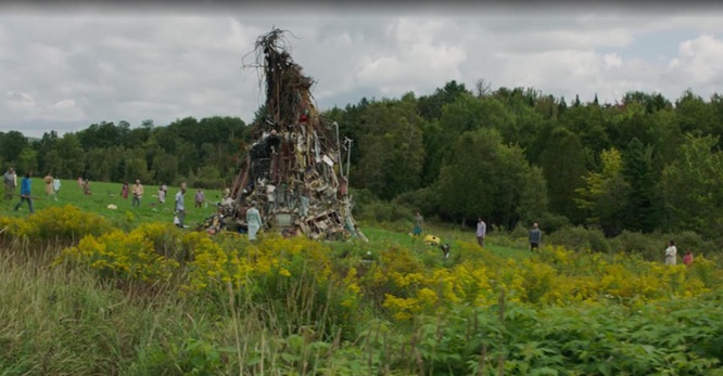 Dans le film de Robin Aubert, où l’on ne tient pas en place par peur d’être mordu·e par un mort-vivant qui sortirait de nulle part, les protagonistes filent en pick-up à travers la campagne, aux aguets, explorant les ruines d’une société immédiatement reconnaissable qu’on retrouve dans un état de délabrement typique des images postapocalyptiques si populaires durant la décennie 2010. Souvent sur des routes désolées, la stylisation du film passe par le véhicule qu’on finit par connaître par cœur, puis par les costumes qui viennent singulariser chacun des personnages en évoquant leur vie d’avant, avec assez d’insistance pour les rendre limpides, sachant bien la différence fine qui existe entre le stéréotype et la caricature. Travaillant en essence les couleurs reconnaissables des personnages qui détonnent contre les images brumeuses de la nature, le film se regarde presque sans récit ni bande sonore, comme une collection de coloris distincts qui se déplacent en meute contre une nature indistinguable. Les personnages s’éparpillent, à la dérive comme des objets aux fonctions disparues, protagonistes à la recherche d’une quête qui dépasserait la simple survie, devenu·e·s inutiles, des monuments au quotidien d’autrefois.