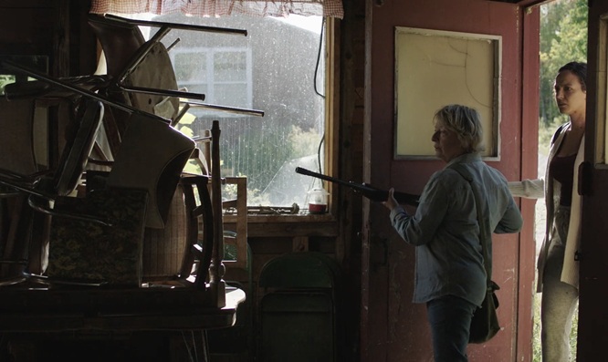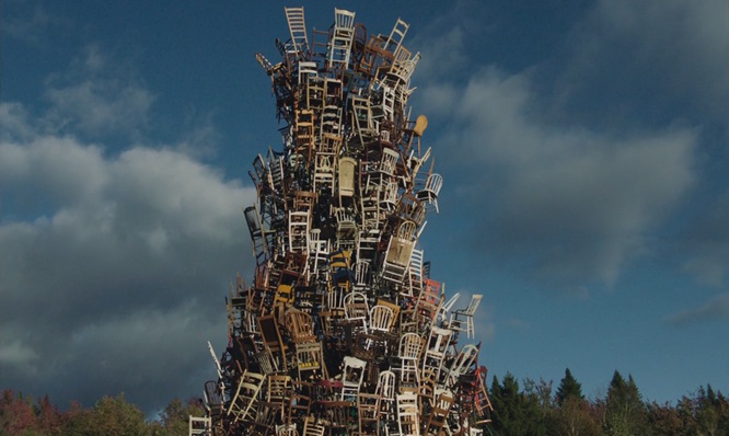 Cette désuétude est bien reflétée par ces fameuses chaises qui finissent en un immense monticule extraordinairement agencé en totem lugubre, à la mitaine par Beauparlant et son équipe, image d’une sépulture érigée par des morts-vivants dont la culture étonnante, opaque, fait, encore aujourd’hui, toute l’originalité des Affamés, avec cette réalisation terrifiante qu’ils ne sont peut-être pas aussi écervelés que le genre du film de zombies l’a toujours laissé croire. Après tout, dans un monde où il faut courir pour rester en vie, peut-être que les chaises, tellement habituelles et associées à la sédentarisation, n’ont plus vraiment lieu d’être, ou à tout le moins elles font partie de ces objets que le genre cinématographique peut dénaturer, reconfigurer. En guise de mise en garde, justement, les femmes qu’on rencontre assises, installées dans leur maison de campagne (Micheline Lanctôt et Marie-Ginette Guay), optent pour un immobilisme protecteur qui finalement les mènera à leur perte. Les affamés courent, il faut courir aussi et les chaises inutiles ne servent plus qu’à signifier le changement de paradigme humain qui s’opère dans le film.