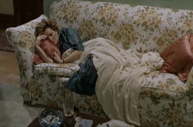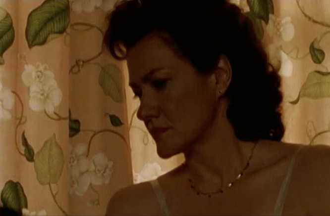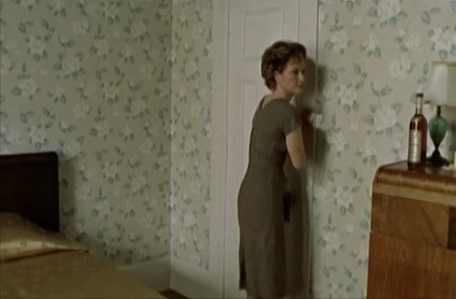 La première observation qui découle d’un visionnement plus intéressé à repérer les motifs de papier peint dans La femme qui boit (Bernard Émond, 2001) qu’à entendre la voix off intimiste du film, c’est à quel point les ornements du décor quasi unique et des costumes portés par Élise Guilbault s’enchevêtrent dans une sorte d’alliance matérielle hostile à la présence du monstre marital incarné par Luc Picard. Quand elle finit par dire « J’aurais dû le quitter ou le tuer. Au lieu de ça je lui ai fait la guerre », c’est comme si tout l’espace s’alliait à cette déclaration. Le personnage de l’homme aux vêtements ternes et bruns est un intrus, un parasite dans l’apparence harmonieuse que cultive la femme aux espoirs brisés par la douleur et l’alcool. Le film d’Émond pourrait être accusé de misérabilisme tellement le drame s’empile sur le drame à travers des ellipses qui ne laissent pas le temps à la tristesse de sécher ses larmes, mais heureusement l’espace, les motifs qui y sont orchestrés, le sentiment immédiatement habité qu’ils prodiguent, racontent plutôt la résilience domiciliaire de cette « femme au foyer » qu’il faut prendre encore davantage au pied de la lettre. C’est la femme du foyer, de foyer, qui s’en occupe et qui provient de lui, qui prend soin de son espace qui s’avère à la fois témoin et miroir d’une condition qui se dégrade, espace qui réalise la violence de la situation peut-être même avant que la femme du titre ne se l’avoue à elle-même. C’est la Chambre à soi de Virginia Woolf qui déborde jusqu’au salon, jusqu’à la cuisine, jusqu’à devenir maison à soi comme forme de résistance.
