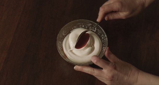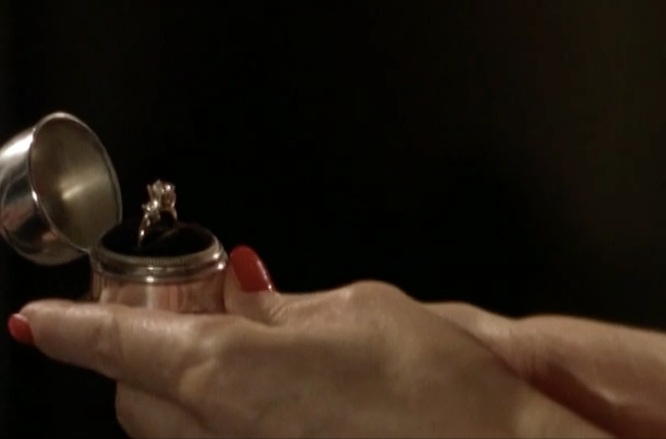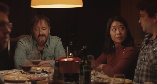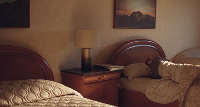 Le cercle rouge devient alors une répétition visuelle, jouant d’une circularité qui finit par définir le récit au complet, des têtes de lit au plat à fondue, et qui se retourne sur lui-même et sa propre interprétation oblique du monde réel. Le cercle rouge à sa manière devient aussi le clignotant de l’enregistrement, du rec, comme un motif visuel qui n’est pas, en soi, énonciatif, mais qui construit de la logique visuelle à travers l’œuvre, lui apportant cohérence et épaisseur d’atmosphère.