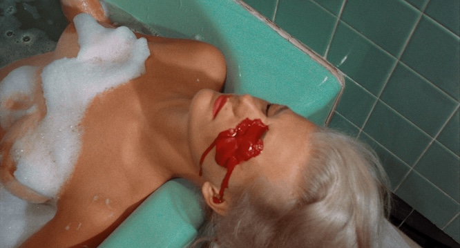 Passer à l’écrit, c’est l’occasion de développer plus amplement les personnages, d’étoffer leur subjectivité, d’en faire plus que de simples ressorts scénaristiques, mais surtout de leur donner de la couleur. Ainsi, Schippers n’est plus un corps-victime, muet, que la caméra zyeute dans un bain de sang en s’attardant exclusivement à sa nudité et à ses blessures suppurantes. C’est un personnage de film noir, amalgame de détails pittoresques, comme le bruit de ses talons sur le marbre de son bureau, « semblable à celui des glaçons cognant contre la paroi d’un verre »[14], qui introduit le double scotch qu’elle consomme dans la phrase suivante, au fil d’un enchaînement d’images qui rappelle le montage cinématographique. Pourvu d’un contexte plus élaboré, même son déshabillage précédant le bain se conçoit comme un rituel aux accents romanesques plutôt que comme un simple effort de monstration pervers.