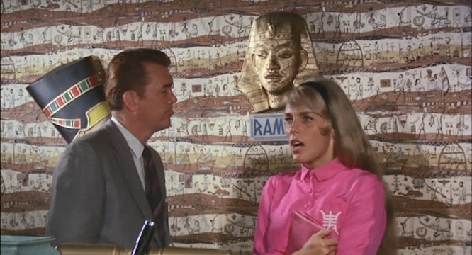 La mort annoncée de Schippers, évoquée avec une pointe d’humour[10], introduit une poignée de personnages corollaires (nouveaux pour la plupart), étoffés d’une façon clownesque : le maladroit ripou Frank Mason, qui se blesse en astiquant son arme et peine à opérer un combiné de téléphone ; le millionnaire Donald Roberts, dont on énumère les conquêtes comme on listerait des héroïnes de soap ; Karl Snarling, le copain éboueur de Schippers, qui, après l’assassinat accidentel du chat parlant de Roberts, devient l’objet principal de l’enquête de Mason, lequel est convaincu que seul un tueur de chats pourrait être responsable du massacre des filles. Puis, vient Pete Thornton, le héros du film et l’adjoint de Mason, qu’on nous présente ici lors d’une scène où il a maille à partir avec une directrice d’école au physique ingrat et un professeur au fort accent allemand, accusé·e·s de fournir du matériel licencieux à leurs élèves. « Thornton orienta sa chaise, de façon à ne pas voir la verrue de la directrice », décrit Lewis, introduisant un autre personnage idiosyncrasique. « Il leva la main du côté gauche de son visage, tira ses cils entre ses doigts et promena nerveusement son pouce sur son front, le tout en silence. »[11] Le détective profitera même de l’occasion pour accepter comme pot-de-vin une copie des Mémoires de Fanny Hill, femme de plaisir (1748), assise historique d’un art érotique que Lewis déprend ici de l’expression vulgaire que lui réserve son film. Fouad Ramsès, de son côté, transcende aussi son ennuyeuse incarnation cinématographique en devenant un dandy farceur et suffisant, héritier de la compagnie Sphinx, pourvoyeuse de stupéfiants camouflés dans des cigarettes au « tabac-haschisch », au « rhum-marijuana » ou à la « cocaïne-cocakoala »[12], qui provoquent des délires psychédéliques testant les limites littéraires de la subjectivité. La figure caricaturale du méchant exotique du cinéma des premiers temps interprété par Mal Arnold[13] disparaît ainsi de notre mémoire, tout comme le souvenir du jeu statique, zombifiant, de Connie Mason finit par s’évanouir face à l’extravagante itération livresque de son personnage.