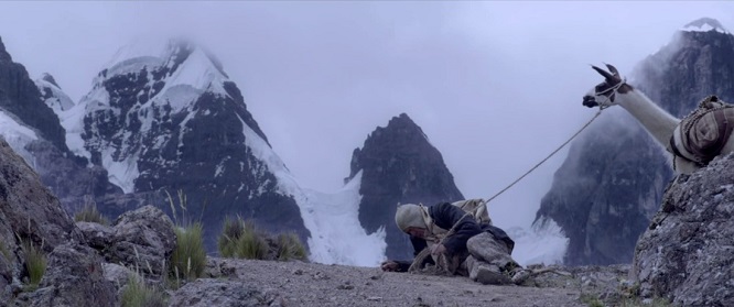Cette ligne de fracture, ce vacillement d’un monde, se transpose subtilement dans la représentation du paysage. Il s’agit d’une impression certes subjective, mais persistante dans l’expérience du film : le sentiment d’une dualité dans le rapport à cette nature qui sature l’écran. D’une part, s’y affirme la vision autochtone telle qu’elle habite l’ensemble des Amériques, selon laquelle on fait partie de la terre, et le monde se compose d’un réseau infini de relations circulaires et réciproques. Dans cette vision, les esprits, comme ceux à qui s’adressent Phaxsi et Willka dans une cérémonie nocturne au début du film, sont les médiateurs auprès desquels on reconnaît notre appartenance à la nature et la vérité de l’univers des liens, les alliés qui permettent de s’insérer dans le tissu des interconnexions. Le cinéaste regarde alors davantage que la beauté plastique d’une image, car le paysage incarne la surface de la toile des liens, du tissu qui noue l’âme aymara à chaque élément de cet environnement. Dans cette perspective, le paysage unifie le visible et l’invisible; les montagnes, les prés verdoyants, les ruisseaux, sont les demeures des esprits avec lesquels on peut entrer en relation.