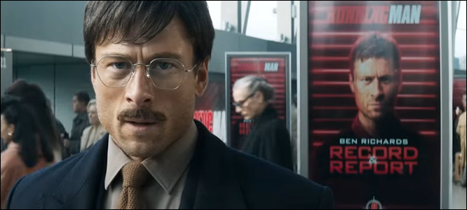 Fidèle au matériel source, l’œuvre nous présente Ben Richards (Glen Powell) comme un pauvre ouvrier qui, son bébé malade dans les bras, insiste auprès de son patron pour garder son emploi industriel malgré ses écarts de conduite. Après avoir essuyé un inéluctable refus, il sort dans une antichambre où un écran de télévision mural fait la promotion de l’émission titulaire, où quiconque pourra survivre à la traque d’un groupe de chasseurs d’élite durant 30 jours recevra la somme faramineuse de 1,000,000,000 néo-dollars. « Je ne suis pas si désespéré », confie-t-il alors à son enfant. Or, il ne faudra que quelques scènes pour qu’il finisse par céder, quelques vignettes familières de misère prolétaire, de persuasion corporatiste et du spectacle navrant de la téléréalité comme le nouveau Colisée romain. Alimenté par une direction artistique usitée, où les appartements troglodytiques qui abritent les pauvres dans les soubassements bétonnés d’une mégalopole cyclopéenne contrastent avec la beauté aseptisée d’un centre-ville qui s’étend à perte de vue, le film nous livre un récit toujours immédiatement intelligible, où tout saute aux yeux, où ni les nuances psychologiques ni les excès caricaturaux ne semblent de mise. On se retrouve ainsi posés sur des rails à la suite du héros, catapultés dans un récit linéaire où tout déboule de façon inexorable.